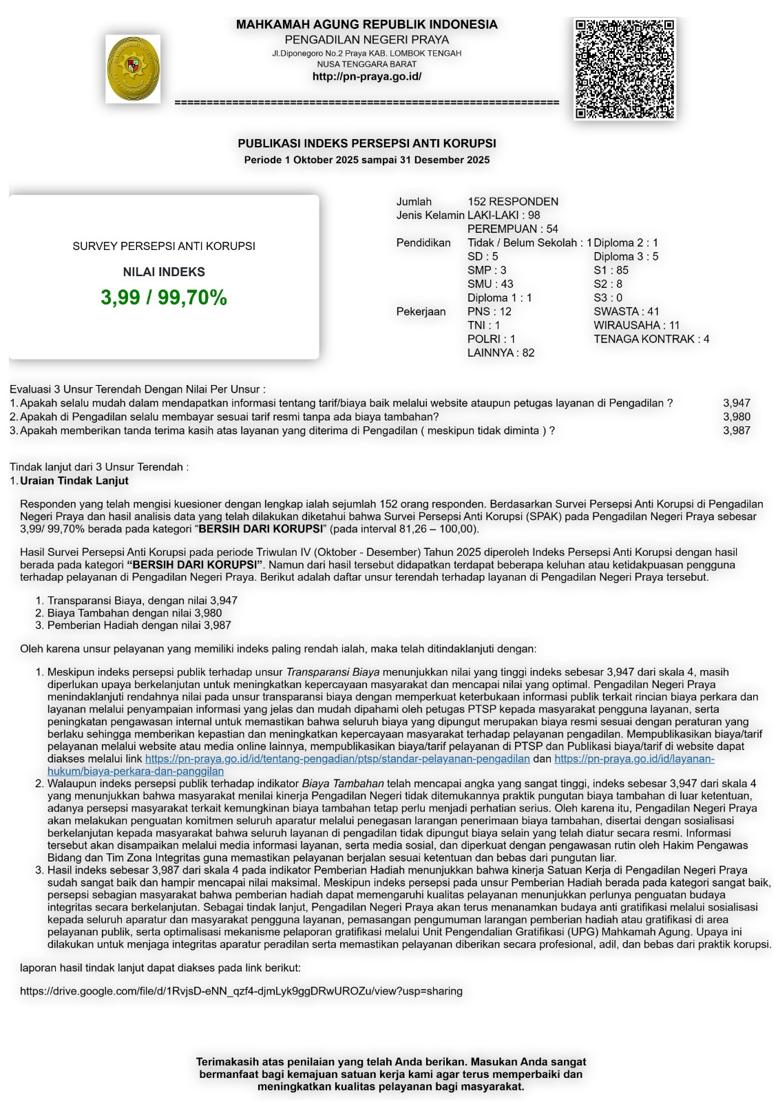 LAPORAN SURVEI PERSEPSI ANTI KORUPSI PENGADILAN NEGERI PRAYA TAHUN 2025