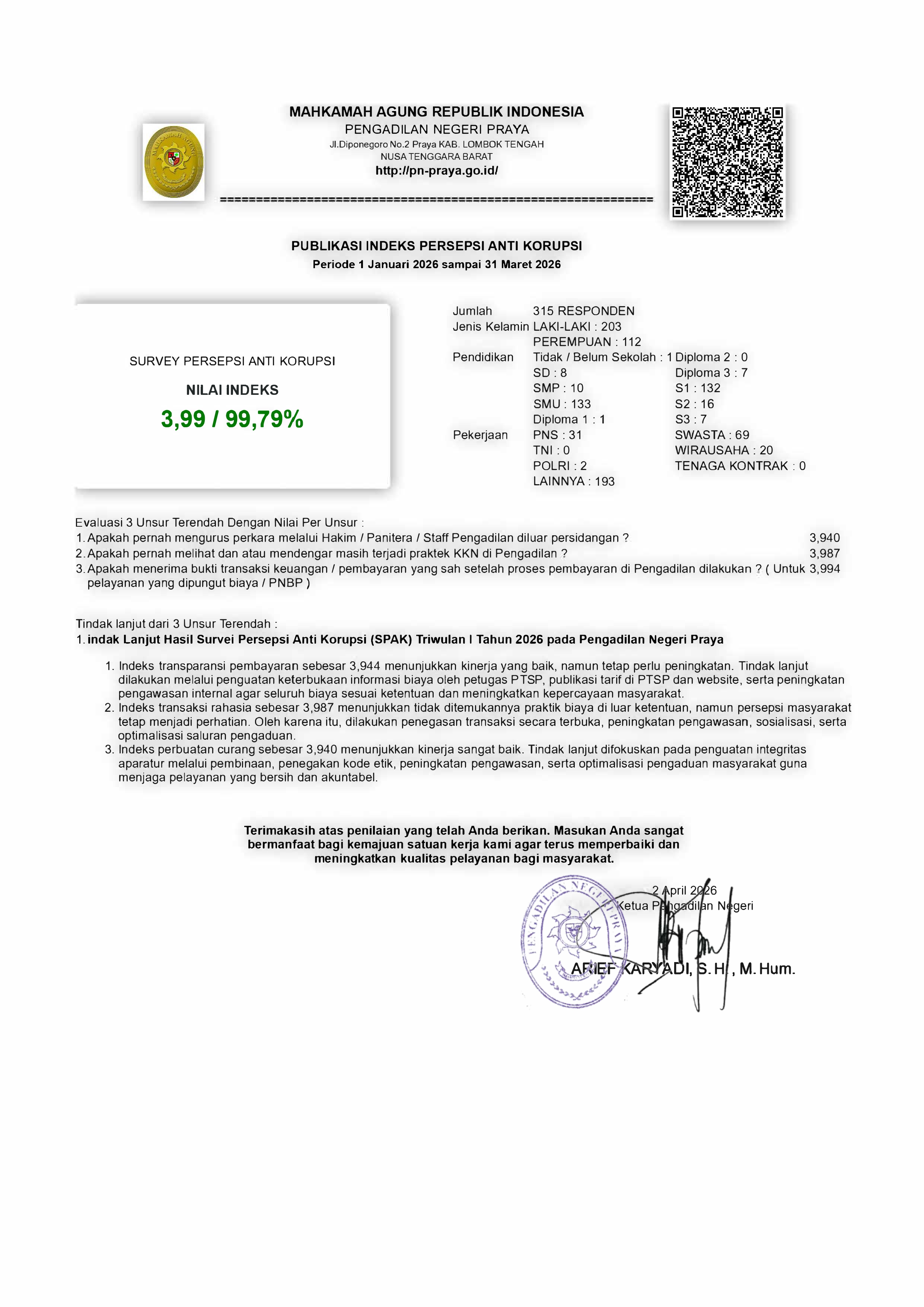 Maklumat Pelayanan Pengadilan Negeri Praya